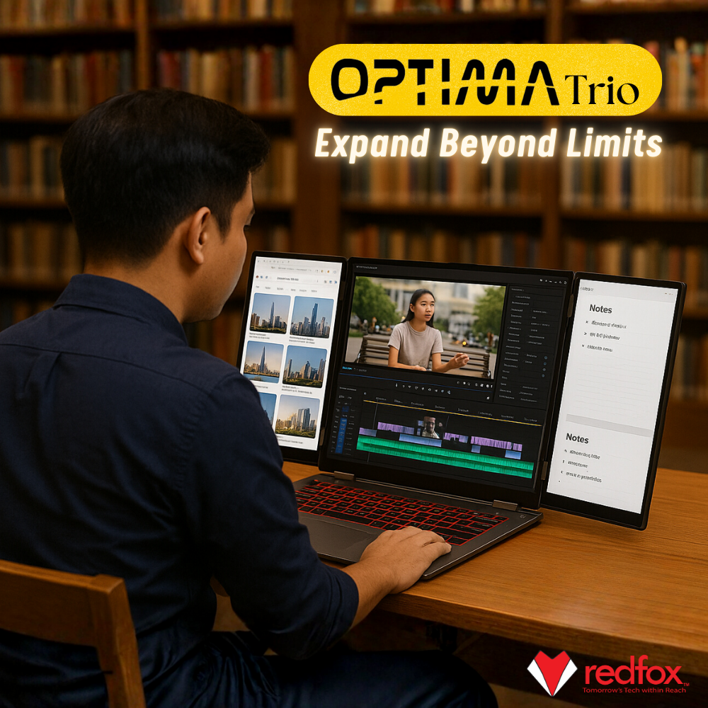 The Optima Trio redefines portable workstations with its innovative triple-display setup. Designed for creators, professionals, and multitaskers, it delivers unmatched efficiency in a lightweight, elegant form.